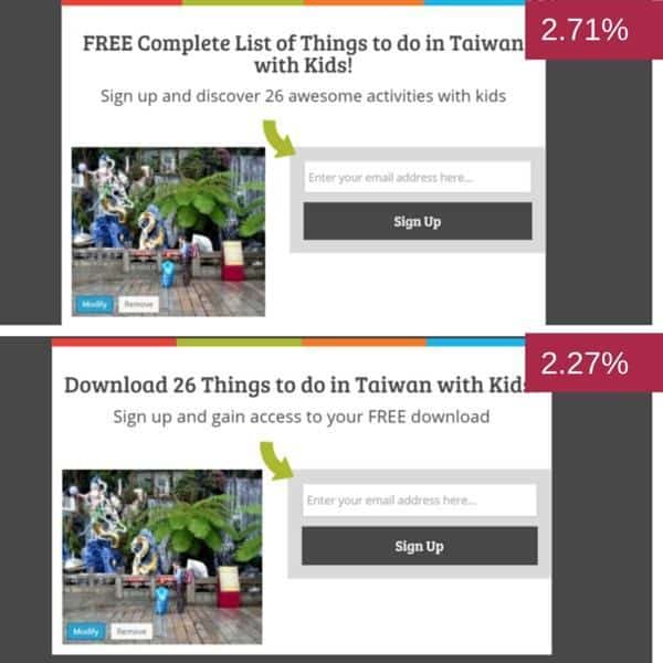 Another important aspect of increasing conversions is split testing. This means creating multiple opt-in forms for a specific location and then seeing which one converts readers to subscribers best.