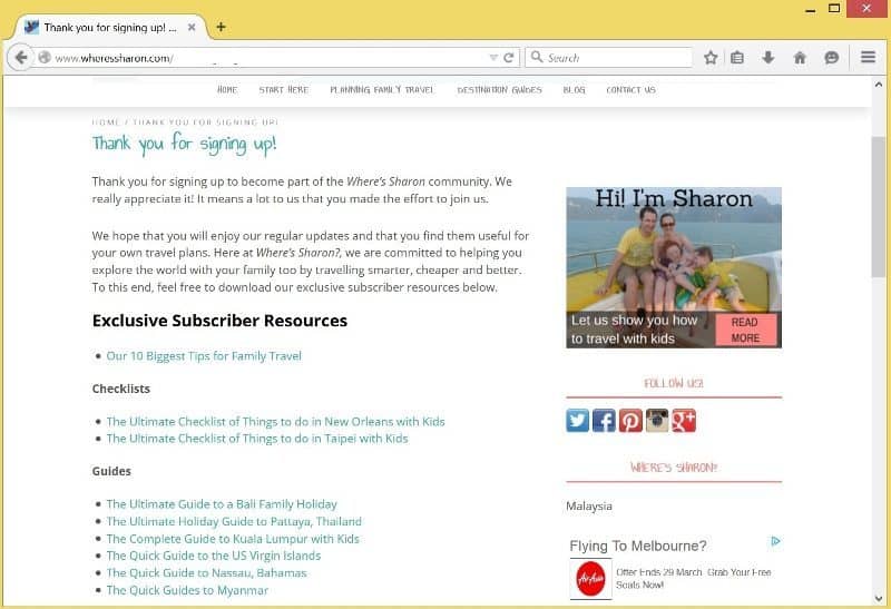I started putting a much higher priority on building an email list for Where’s Sharon (my old travel blog) when I decided I wanted to significantly increase my passive income on my blog. What better way to do this than to collect subscribers and put them through an autoresponder series which leads them to posts that can make me money (and, of course, help them at the same time).