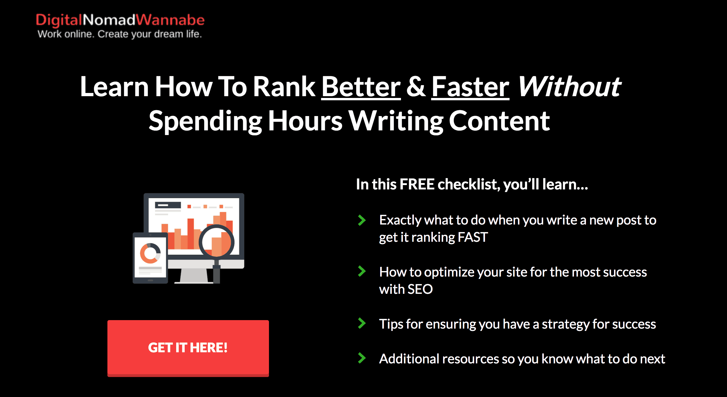 This is a quick, easy to consume checklist which provides lots of value. In fact, simple lead magnets are usually the best as people often don’t have time to read a whole eBook or something long.