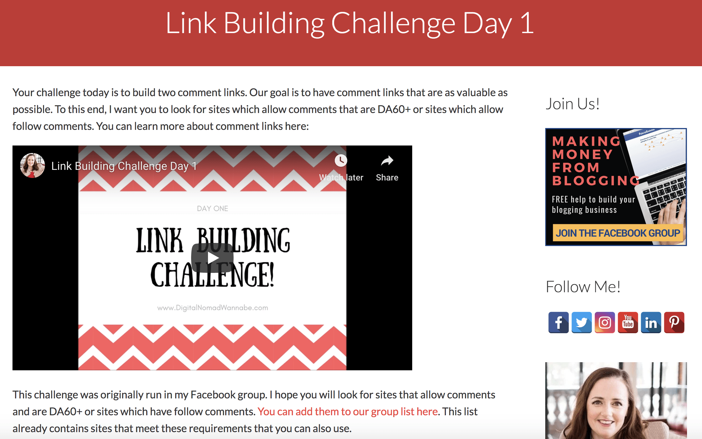 We have run several challenges in the past, but two we currently use are the 7 Day Link Building Challenge and the 5 Day Goal Setting Challenge.
