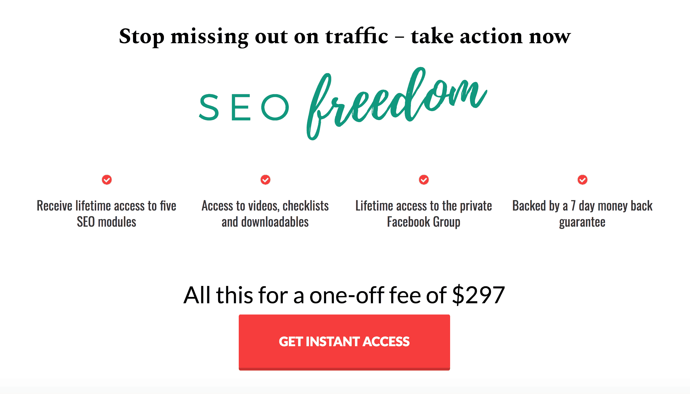 For example, after I show people how to grow links with the link building challenge, I offer to teach them about other areas of SEO in my webinar. Then from the webinar, I offer to show them how to do everything in detail in my course.