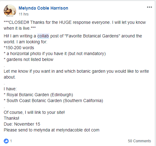 Here is an example of a collab request posted recently in the DNW Facebook Group.