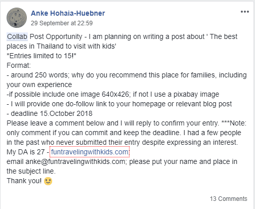 The “rules” for collabs are generally set by the Facebook group or other location in which the requests are made. I’m going to rely on you reading those rules, as each group is different, my best practice approach is based on the rules of the DigitalNomadWannabe Facebook group. There are also a few unwritten rules which I’ll cover here: