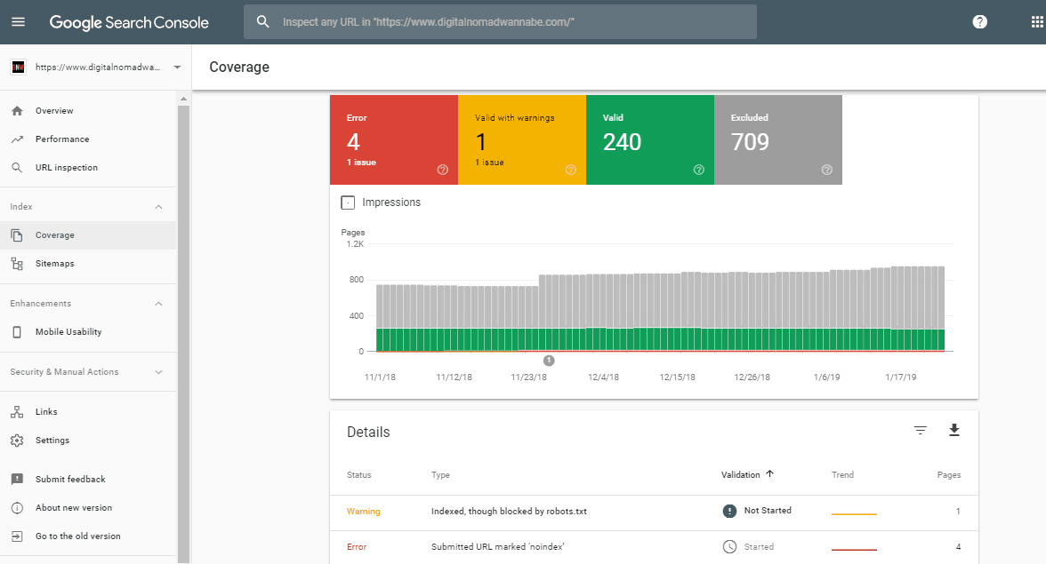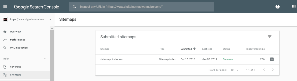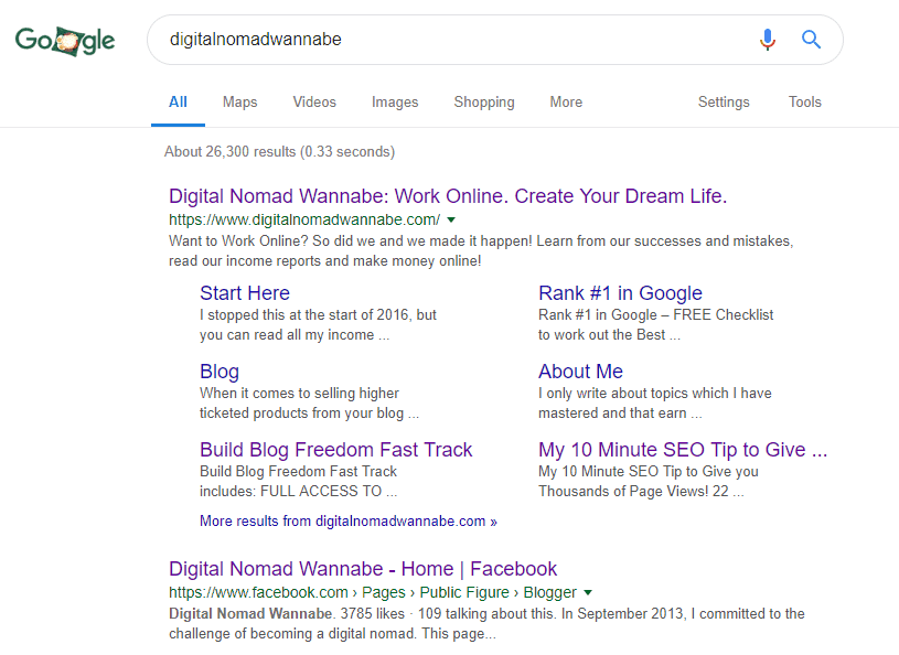 1.       Check your site is indexed:  e.g. Google site:digitalnomadwannabe.com”