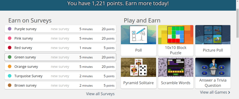 - Huge variety of ways to get points (games, videos, surveys, shopping etc.)