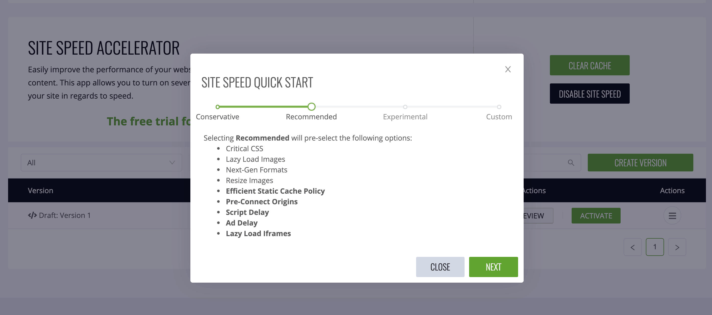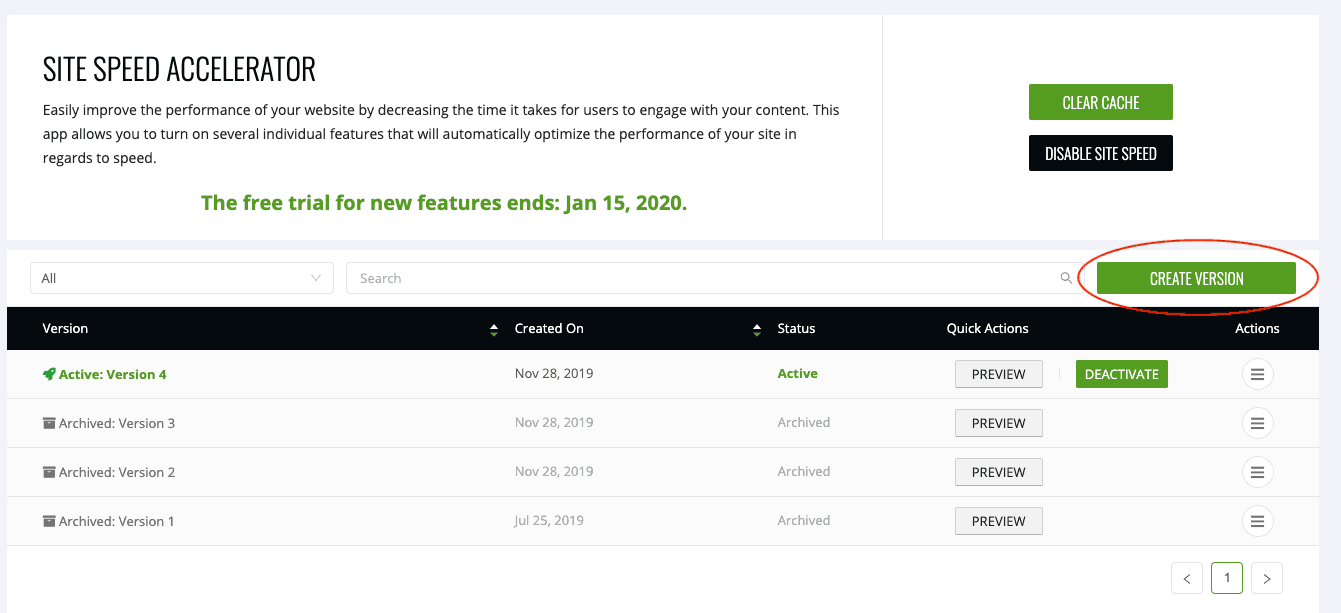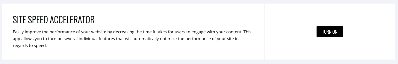 - Scroll down to the “Site Speed Accelerator” option and click “Turn On”.