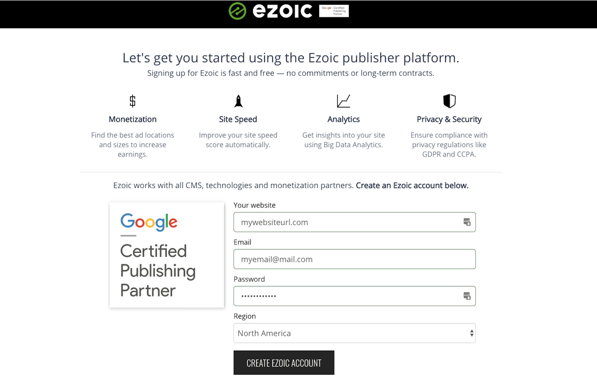- Sign up for Ezoic here if you are not currently a member. If you are already a member, log in to your account.
