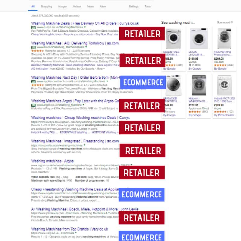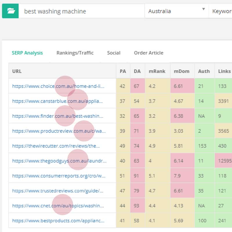 If your site is a .com site and the top 10 are primarily made up of .edu ’s for instance then move on. It will be much harder for you to rank. Equally, if they are all e-commerce sites – then your article on for instance Best Washing Machines will have a hard time ranking.
